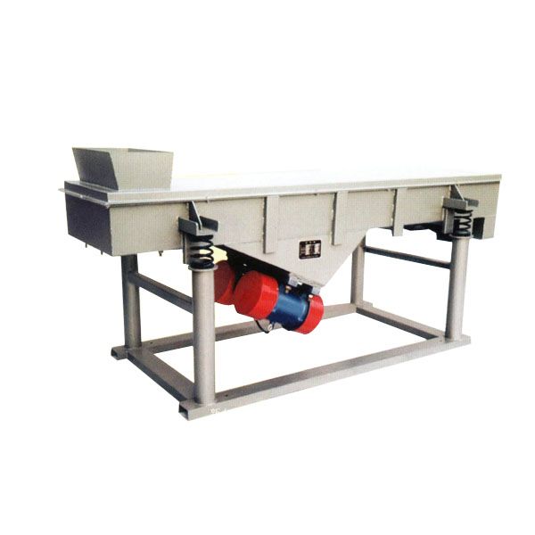 當(dāng)縱向安裝在篩體上的兩臺振動電機(jī)兩端的偏心塊便產(chǎn)生額定激振力,其產(chǎn)生在橫向的激振力相互抵銷,其縱向的激振力通過傳振體傳遞到整個篩面上,從而使篩面上的物料受其激振力而在篩網(wǎng)面上向出料口方向跳躍運(yùn)動。小于篩孔的物料通過篩孔落到下層,大于篩孔的物料經(jīng)連續(xù)跳躍后,經(jīng)出料口流出,由于篩分過程合理,可將物料經(jīng)振動篩分級后,取得幾種不同顆粒的物料,完成物料的分級。